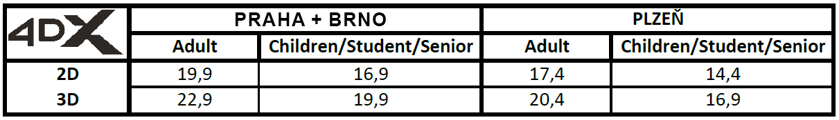 Dle vybrané lokace. Mimo Prahu se sál 4DX nachází pouze v Cinema City Plzeň. |