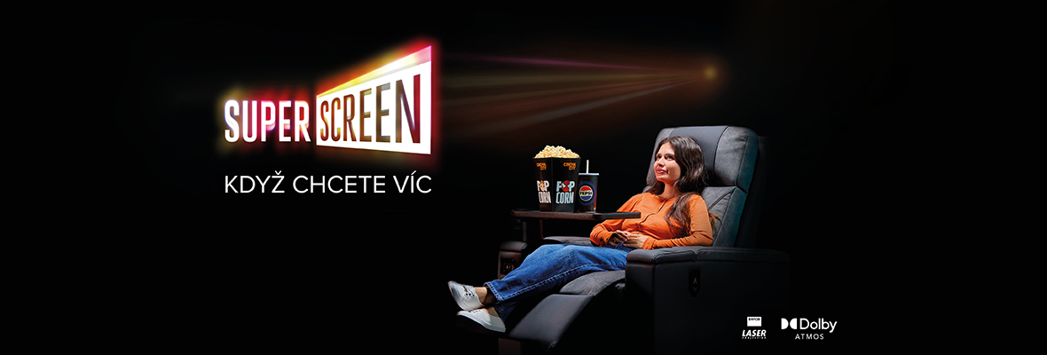 Obří plátno s dokonalým obrazem (nejmodernějším 4K RGB laserovým projektorem) a strhujícím prostorovým zvukem Dolby Atmos dopňují ty nejpohodlnější sedačky pro maximální komfort – to je SUPERSCREEN!